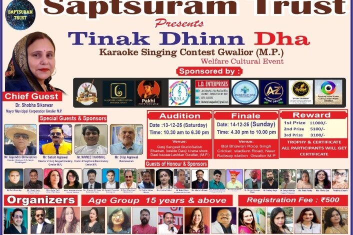 ग्वालियर में गूंजेंगे सुरों के तराने — ‘तिनक धिन धा, कराओके सिंगिंग कॉन्टेस्ट’ के लिए ऑडिशन 13 को