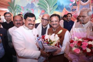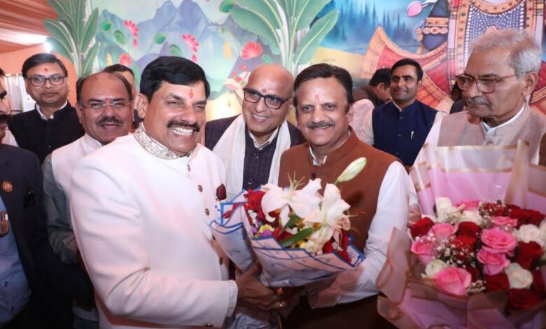 उप मुख्यमंत्री श्री राजेंद्र शुक्ल ने आज उज्जैन पहुंचकर मुख्यमंत्री डॉक्टर मोहन यादव को उनके सुपुत्र चि. अभिमन्यु के सामूहिक विवाहोत्सव में संपन्न हुए मंगल विवाह की हार्दिक बधाई और शुभकमाए दीl