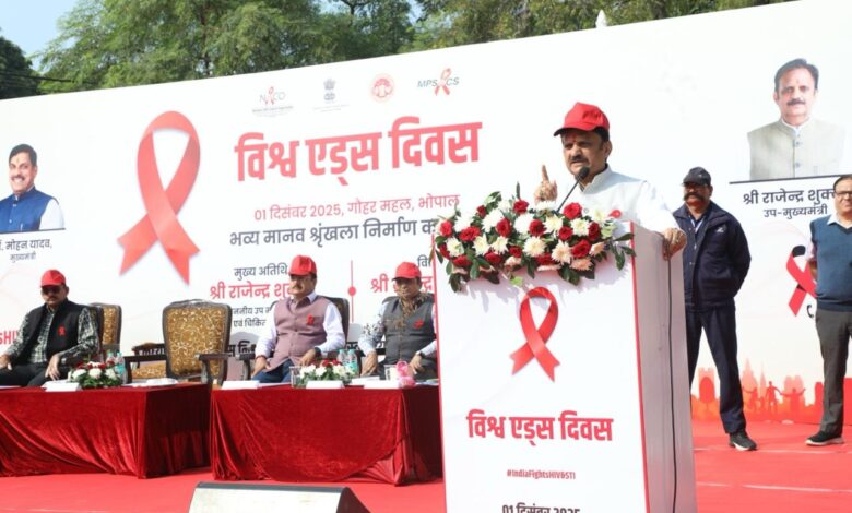 भोपाल : 1 दिसम्बर, 2025’उप मुख्यमंत्री माननीय श्री राजेन्द्र शुक्ल ने कहा कि वर्ष 2030 में एच.आई.वी महामारी को समाप्त करने का लक्ष्य निर्धारित है। इस महामारी को रोकने के लिए दोहरे प्रयास किये जा रहे है. एक ओर हमें ‘प्रिवेंशन इस बेटर देन क्योर’ (सुरक्षा उपचार से बेहतर है) की तर्ज पर नये एच आई वी संक्रमणों को रोकना है तो वहीं जो लोग दुर्भाग्यवश एच.आई.वी. संक्रमित हो चुके हैं, उन्हें ए.आर.टी. केंद्र के माध्यम से स्वस्थ रखना हैl मध्यप्रदेश राज्य एड्स नियन्त्रण समिति द्वारा गोहर महल, भोपाल में आयोजित विश्व एड्स दिवस कार्यक्रम में अपने उद्बोधन में उन्होंने कहा प्रधानमंत्री श्री नरेन्द्र मोदी के लक्ष्यों की पूर्ति के प्रति बहुत गंभीर रहते हैं और सभी प्रमुख स्वास्थ्य कार्यक्रमों की दिन प्रतिदिन क्लोज़ मॉनिटरिंग और प्रगति की समीक्षा होती हैl कितने टेस्ट हुए, कितने नए प्रकरण मिले और कितनो को उपचार मिला आदिl