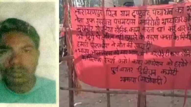 29 नक्सलियों की मौत से बैखलाए माओवादी, नारायणपुर में मुखबिरी के शक में भाजपा नेता की हत्या