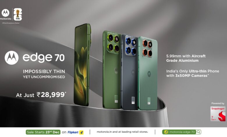 मोटोरोला ने भारत में लॉन्‍च किया edge 70 – बहु-प्रतीक्षित और बिना किसी समझौते वाला अल्‍ट्रा-थिन फोन, आकर्षक डिजाइन, तीन वर्सेटाइल 50MP कैमरे, 40^ घंटे तक की बैटरी लाइफ, मिलिट्री-ग्रेड ड्यूरैबिलिटी, सब कुछ 28,999 रुपये में*