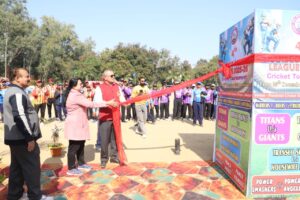 इसके पूर्व ‘‘ट्रांसको प्रीमियर क्रिकेट लीग 2025-26‘‘ की रंगारंग शुरूआत स्थानीय पाण्डूताल मैदान में हुई। आसमान में उड़ते रंग-बिरंगे गुब्बारे, आतिशबाजियों के शोर, कॉस्ट्यूम कैरेक्टर के मंनोरंजन एवं खचाखच भरे स्टेडियम में उल्लास और उत्साह से बैठे दर्शकों की लगातार तालियों के बीच एम.पी. ट्रांसको के प्रबंध संचालक सुनील तिवारी एवं मध्यप्रदेश विद्युत महिला मंडल की अध्यक्ष डॉ. अंजना तिवारी ने एम.पी. ट्रांसको प्रीमियर लीग के चौथे संस्करण का आधिकारिक उद्घाटन किया। विशिष्ट अतिथि मध्यप्रदेश विद्युत महिला मंडल की अध्यक्ष डॉ. अंजना तिवारी एवं कंपनी सचिव सुश्री रितु जैन ने दीप प्रज्वलित किया। प्रबंध संचालक सहित सभी विभागध्यक्षों ने खिलाडियों से परिचय प्राप्त कर उन्हें शुभकामनाएं दी। उद्घाटन समारोह का संचालन कार्यपालन अभियंता श्रीमति क्षमा शुक्ला ने किया।