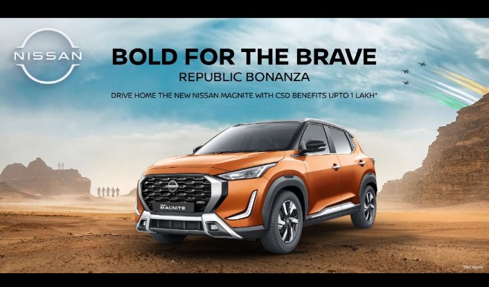 निसान ने ‘बोल्ड फॉर द ब्रेव’ रिपब्लिक बोनांजा ऑफर को देश की सुरक्षा में लगे भारतीय सेनाओं, केंद्रीय अर्धसैनिक एवं राज्य पुलिस बलों की अथक प्रतिबद्धता, त्याग एवं समर्पण के सम्मान में पेश किया है। इस पहल के लिए निसान ने समर्पित रूप से 24*7 हेल्पडेस्क भी स्थापित की है, जिससे बुकिंग एवं डिलीवरी की प्रक्रिया को तेज किया जा सके। इससे जवानों को अपने दैनिक जीवन के दबावों के बीच नई निसान मैग्नाइट की खरीद का एक सुगम अनुभव मिल सकेगा।