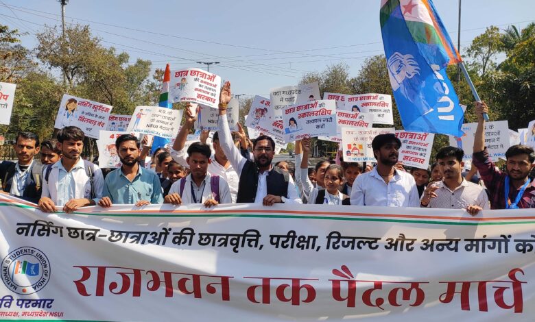 नर्सिंग छात्रों की छात्रवृत्ति एवं परीक्षाओं में देरी को लेकर एनएसयूआई का जोरदार प्रदर्शन