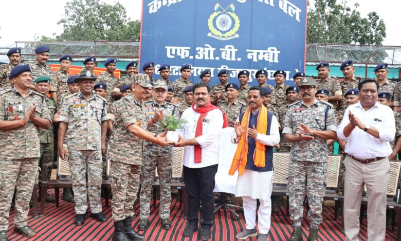 इस अवसर पर उपमुख्यमंत्री श्री शर्मा ने ‘एक पेड़ मां के नाम’ अभियान के तहत वृक्षारोपण कर पर्यावरण संरक्षण का संदेश दिया। इस कार्यक्रम में दंतेवाड़ा विधायक श्री चौतराम अटामी, जिला पंचायत सदस्य शंकरैया माड़वी जनपद पंचायत अध्यक्ष सुश्री पूर्णिमा तेलम श्री घासी राम नाग एडीजी नक्सल ऑपरेशन श्री विवेकानंद सिन्हा, बस्तर संभाग आयुक्त श्री डोमन सिंह, आईजी बस्तर श्री सुंदरराज पी., डीआईजी श्री कमलोचन कश्यप, कलेक्टर श्री संबित मिश्रा, पुलिस अधीक्षक डॉ. जितेंद्र यादव, डीएफओ श्री रंगानाथन रामकृष्णन वाय, जनप्रतिनिधि एवं बड़ी संख्या में सुरक्षा बल के जवान उपस्थित रहे।