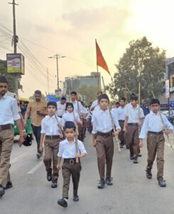 भोपाल। राष्ट्रीय स्वयंसेवक संघ, महावीर नगर द्वारा संघ शताब्दी वर्ष के उपलक्ष्य में बुधवार को शालेय एवं महाविद्यालयीन विद्यार्थियों का भव्य पथ संचलन निकाला गया। संचलन मन्निपुरम कॉलोनी मैदान से प्रारंभ होकर मन्निपुरम कॉलोनी, लिंक रोड-3, बिट्टन मार्केट, रविशंकर नगर, चार इमली होते हुए पुनः मन्निपुरम मैदान में सम्पन्न हुआ।