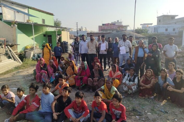 कॉलोनी के रहवासियों ने धरना प्रदर्शन करके किया विरोध