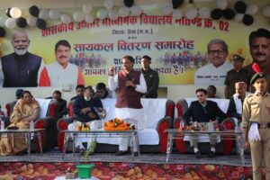 भोपाल 30 दिसम्बर 2025’उप मुख्यमंत्री राजेन्द्र शुक्ल ने कहा कि आज के बच्चे कल का भविष्य हैं। हमारा देश तेजी से आगे बढ़ रहा है। देश को ऊंचाई पर बनाए रखने का कार्य नई पीढ़ी को ही करना है। उप मुख्यमंत्री श्री शुक्ल ने शासकीय मार्तण्ड क्रमांक दो विद्यालय में कक्षा 9वीं के विद्यार्थियों को साइकिल का वितरण किया। उन्होंने दो करोड़ रुपए की लागत से बनाए जाने वाले 12 अतिरिक्त कमरों के निर्माण कार्य का भूमिपूजन भी किया।