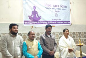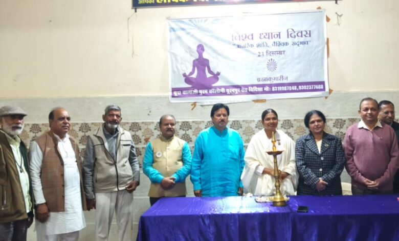 राष्ट्रीय मीडिया प्रभारी अखिल भारतीय स्वर्णकार महासभा तथा मल्टीपल एवं डिस्ट्रिक्ट सह मल्टीमीडिया प्रभारी लायन अरुण कुमार सोनी ने बताया कि भारतीय ज्ञान के महत्व को समझते हुए संयुक्त राष्ट्र संघ द्वारा आंतरिक शांति और संतुलन के लिए ध्यान के प्रभाव, कार्य, महत्व को मान्यता प्रदान करते हुए प्रतिवर्ष 21 दिसंबर को विश्व ध्यान दिवस मनाने का निर्णय लिया गया। इसी क्रम में अंतर्राष्ट्रीय ध्यान दिवस के अवसर पर सामूहिक ध्यान शिविर ब्रह्माकुमारी बालाजीपुरम एवं मानव सेवा न्यास समिति द्वारा मानव सेवा न्यास भवन पुराने हॉस्पिटल के सामने में आयोजित किया गया।