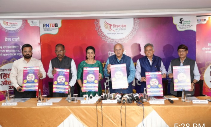 भोपाल। हिंदी भाषा के वैश्विक प्रचार – प्रसार और नई पीढ़ी को हिंदी से जोड़ने के उद्देश्य से विश्व रंग फाउंडेशन (भारत), रवीन्द्रनाथ टैगोर विश्वविद्यालय भोपाल एवं वनमाली सृजन पीठ द्वारा संयुक्त रूप से विश्व रंग अंतरराष्ट्रीय हिंदी ओलंपियाड 2025 का आयोजन किया जा रहा है। यह आयोजन 14 सितम्बर (हिंदी दिवस) से 30 सितम्बर (अंतरराष्ट्रीय अनुवाद दिवस) तक भारत सहित विश्व के 50 से अधिक देशों में आयोजित होगा। कार्यक्रम को लेकर विश्व रंग के निदेशक और रवीन्द्रनाथ टैगोर विश्वविद्यालय के कुलाधिपति संतोष चौबे, विश्व रंग की सह निदेशक और रवीन्द्रनाथ टैगोर विश्वविद्यालय की प्रो. चांसलर डॉ. अदिति चतुर्वेदी वत्स, वरिष्ठ शिक्षाविद् डॉ. अमिताभ सक्सेना, टैगोर अंतरराष्ट्रीय हिंदी केन्द्र के निदेशक डॉ. जवाहर कर्नावट और टैगोर अंतरराष्ट्रीय साहित्य एवं कला केंद्र के निदेशक विनय उपाध्याय ने कार्यक्रम पर विस्तृत जानकारी साझा की। विश्वरंग हिंदी ओलंपियाड का औपचारिक उद्घाटन मध्य प्रदेश के मुख्यमंत्री मोहन यादव द्वारा 15 सितंबर को वेबसाइट के उद्घाटन के साथ किया जाएगा। इस दौरान संतोष चौबे ने विश्व रंग अंतरराष्ट्रीय हिंदी ओलंपियाड पर बात करते हुए कहा कि विश्व रंग हिंदी ओलंपियाड 65 देशों में हिंदी के लिए काम करने वाले, हिंदी बोलने, सुनने, लिखने वाले लोगों को एक साथ लाने का कार्य करेगा। इसका 14 सितम्बर से 30 सितम्बर तक आयोजन किया जाएगा जिसमें भारत में कक्षा 1 से लेकर स्नातकोत्तर तक तथा विदेशों में लेवल 1 से लेवल 6 तक के विद्यार्थियों को छह स्तरों पर अवसर दिया जाएगा। हिंदी ओलंपियाड अपने स्वरूप और विस्तार के लिहाज से अब तक का सबसे बड़ा सांस्कृतिक–शैक्षणिक अभियान होगा। इस अंतरराष्ट्रीय प्रतियोगिता में विजेताओं को आकर्षक पुरस्कार दान किए जाएंगे, साथ ही प्रत्येक प्रतिभागी को प्रमाणपत्र भी मिलेगा।