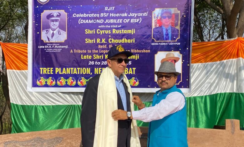 बी एस एफ हीरक जयंती के अवसर पर नीम शीशम पर्वत पर्यटन स्थल पर आकार भ्रमण किया श्री साइरस रुस्तमजी एवं श्री आर के चौधरी सेवानिवृत आई जी का बीएसएफ अकादमी आगमन पर पदम् विभूषण स्व. श्री के एफ रुस्तमजी की महान विरासत को नमन