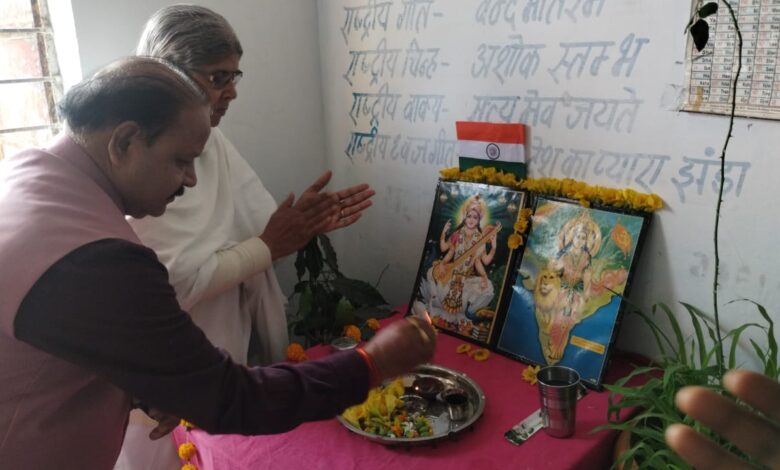 विश्व गीता जयंती माध्यमिक शाला कस्बा बेरखेड़ी विदिशा में लायन अरुण कुमार सोनी के मुख्य आतिथ्य में मनाई गई
