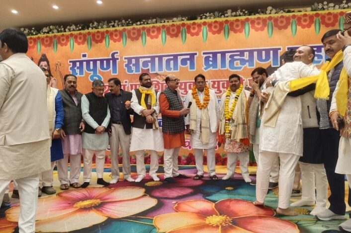 भोपाल । संपूर्ण सनातन ब्राह्मण महासभा 42वां प्रादेशिक युवक युवती परिचय सम्मेलन 28 दिसंबर को भोपाल में अवधपुरी में मुख्य अतिथि भगवान परशुराम के देव सानिध्य में आयोजित किया गया। सम्मेलन में प्रदेश और देश के विभिन्न हिस्सों से आए विवाह योग्य युवक -युवतियों ने जीवन साथी को लेकर बेबाकी से अपना परिचय दिया वहीं परिजनों ने कुंडली मिलान को लेकर वहां मौजूद ज्योतिषी से चर्चा करते नजर आए। इसके अलावा परिजनों ने एक दूसरे का संपर्क नंबर आदान-प्रदान किया। महासभा के राष्ट्रीय अध्यक्ष अध्यक्ष बृजेश व्यास, राष्ट्रीय सचिव रमाकांत शुक्ला ने बताया कि सम्मेलन में एक हजार से अधिक पंजीयन हुए। कार्यक्रम में एक पत्रिका का विमोचन भी किया गया। संपूर्ण सनातन ब्राह्मण महासभा के अध्यक्ष बृजेश व्यास ने कहा कि यह 42वां कार्यक्रम है । सम्मेलन में अभी तक 38000 रिश्ते तय हो चुके हैं यह रिकॉर्ड में है । आज के सम्मेलन में 1100 युवक युवतियों ने पंजीयन कराया जिसमें दिल्ली, गुजरात महाराष्ट्र ,छत्तीसगढ़ और मध्य प्रदेश के सभी जिलों से युवक युवतियों ने परिचय दिया। व्यास ने बताया कि यहां पर कुंडली मिलान, परिजनों के आपसी संवाद और भोजन की व्यवस्था की गई है। सम्मेलन में राज्य मंत्री कृष्णा गौर, पीसी शर्मा कैलाश शर्मा, वैद्य चंद्रशेखर तिवारी, राधेश्याम शर्मा आचार्य पंडित राजीव तिवारी, दीपाली तिवारी , जाह्नवी दीक्षित, अशोक कटारे वीरेंद्र बढ़गैंया, रवि व्यास राधेश्याम शर्मा, सचिव रमाकांत शुक्ला ,अध्यक्ष बृजेश व्यास सहित समाज के बड़ी संख्या में लोग मौजूद रहे।